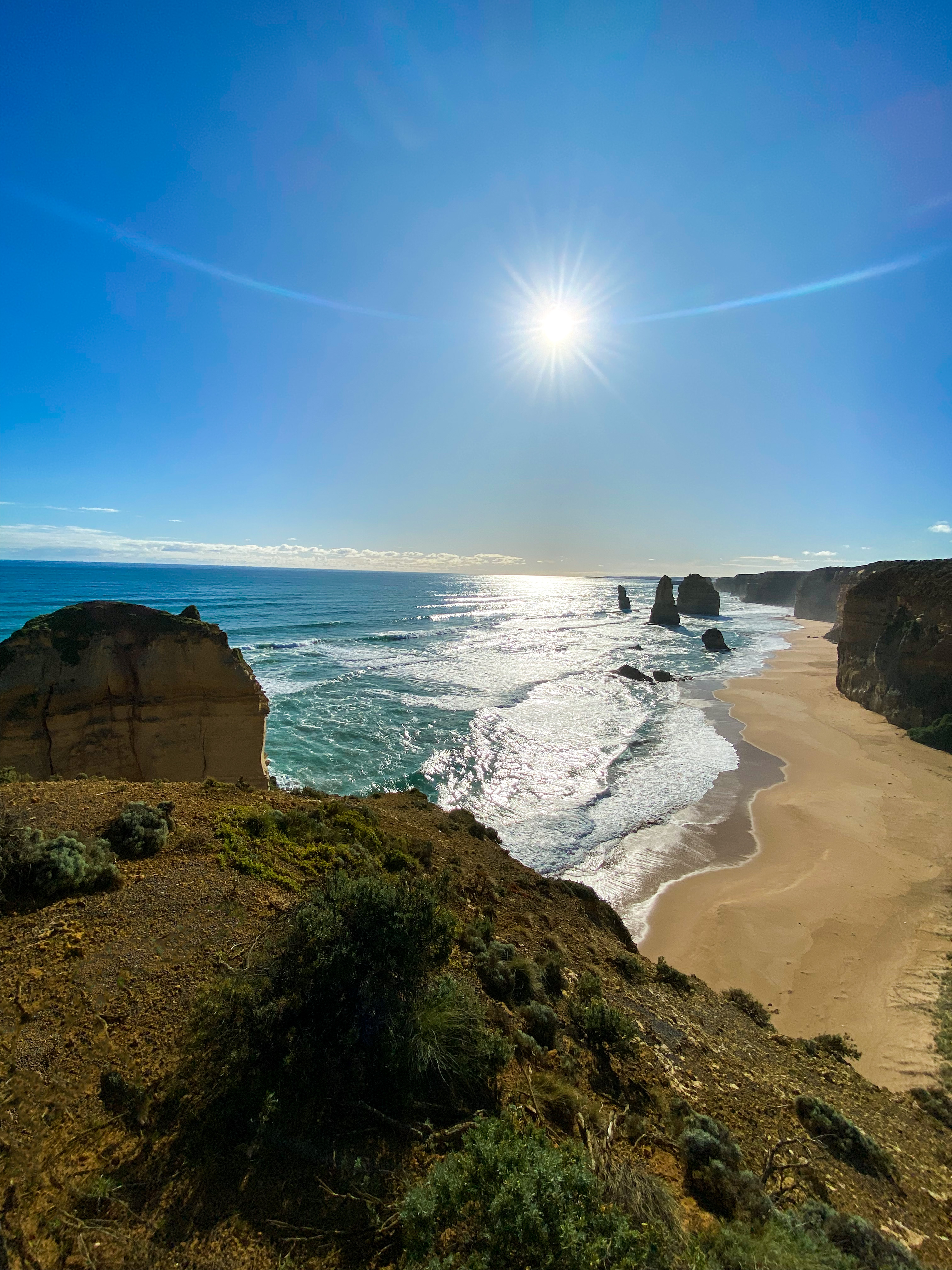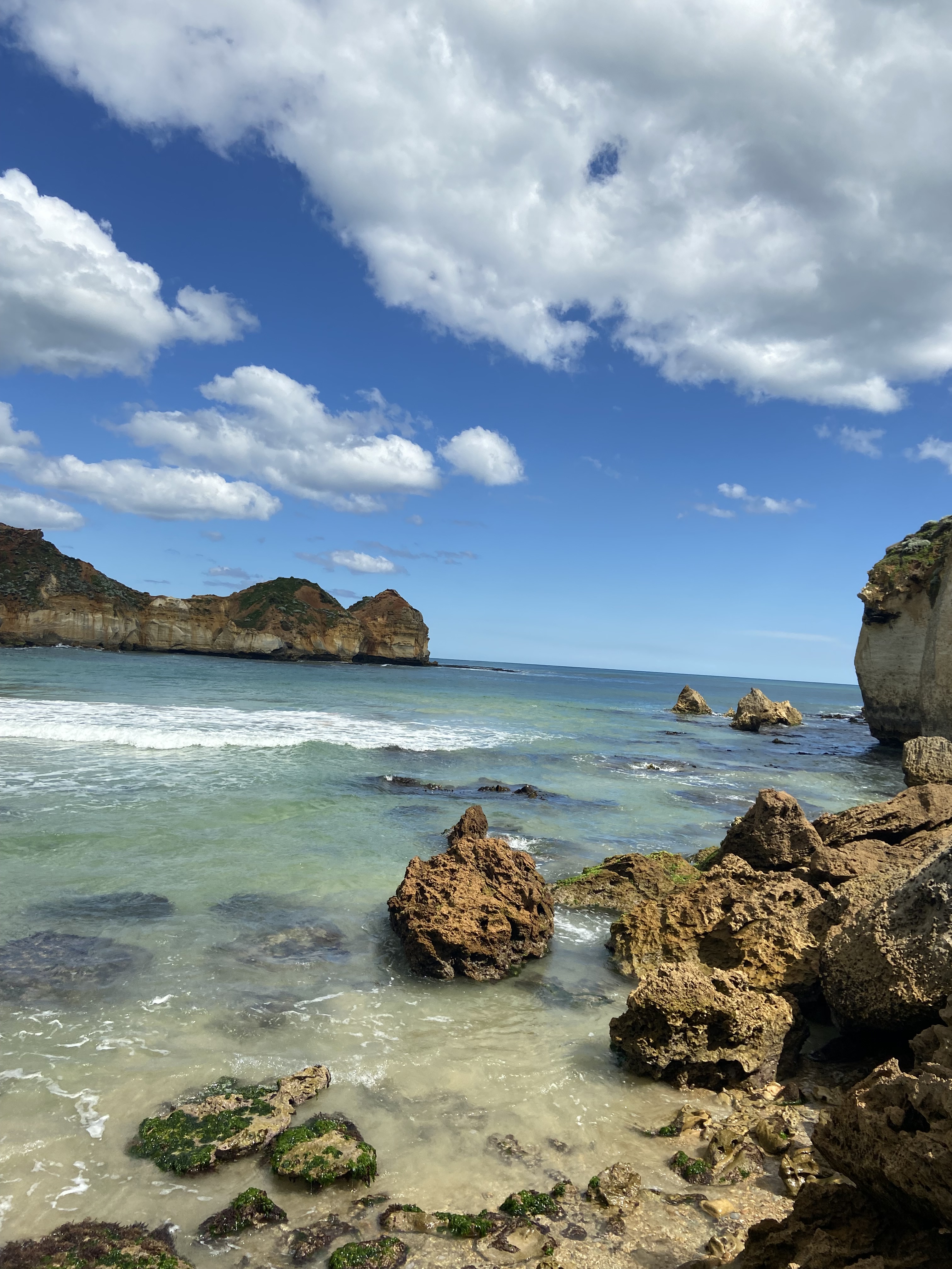 London Bridge did not disappoint. Located much more scenically than the original London Bridge, this limestone island makes a stunning picture against the blue ocean. We had a quick look over the cliffs at the bay of Martyrs, and stopped again at the Bay of Islands for a quick paddle and a photoshoot in the sun. The crystal-clear water and yellow sand here are what you imagine when you think of Australian beaches, and the sun was very welcome after a long winter in Victoria.