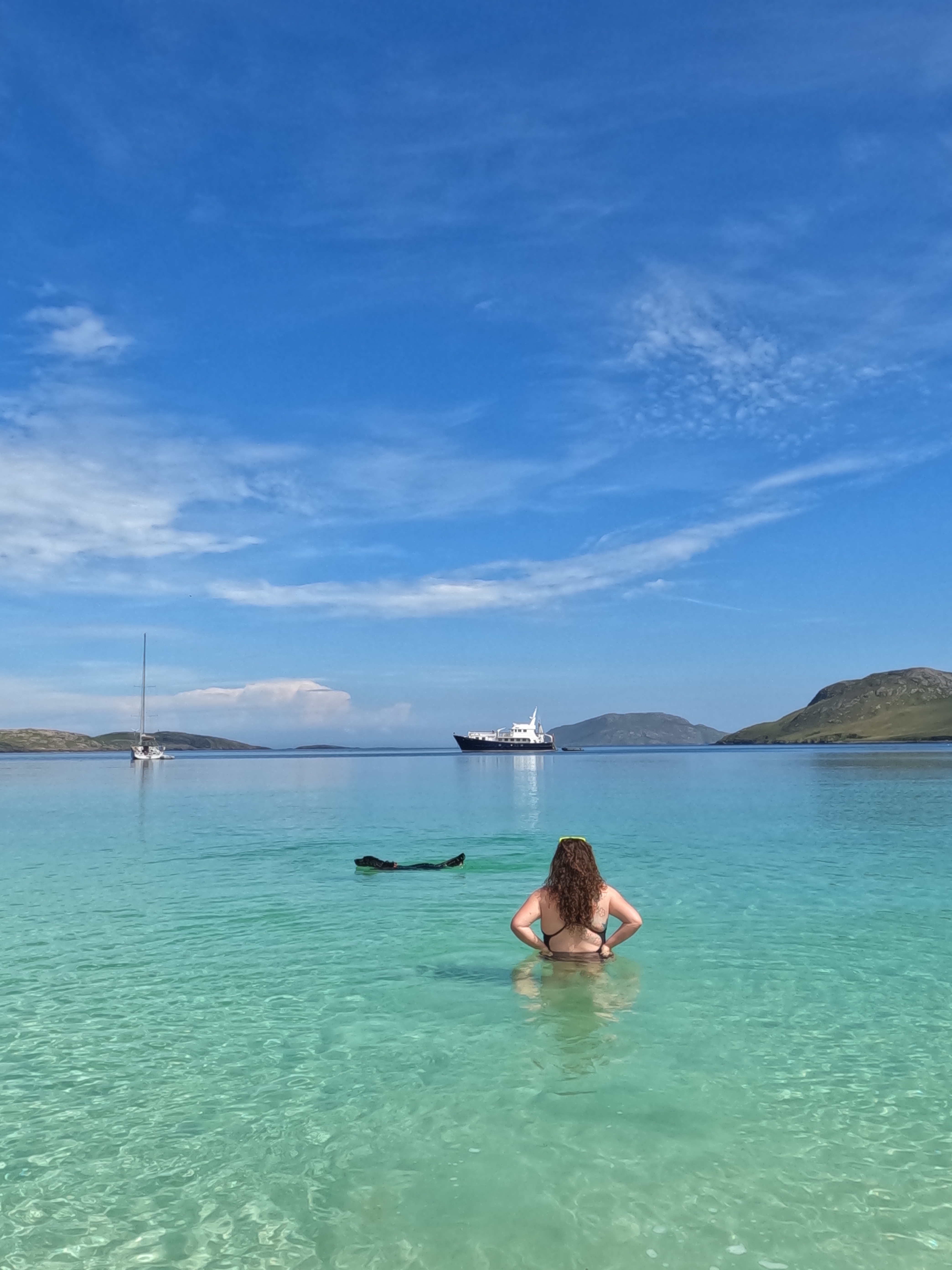 Since arriving on Barra at the start of June, we have spent the bulk of our free time relaxing on the many beaches around the islands. This is ideal for Izzy as she absolutely loves swimming and digging in the sand. Daisie has taken her love of cold water swimming to a new level and regularly jumps in the sea with the local Blue Tits swimming group, and James just likes a relaxing stroll or a beach BBQ on a clear evening.